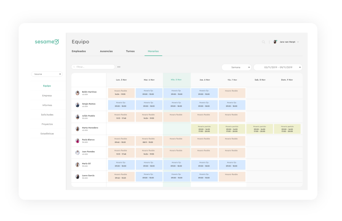 Asigna horarios a los colaboradores en función de su disponibilidad y consulta en tiempo real la carga de trabajo de cada uno de los miembros de tu equipo.
